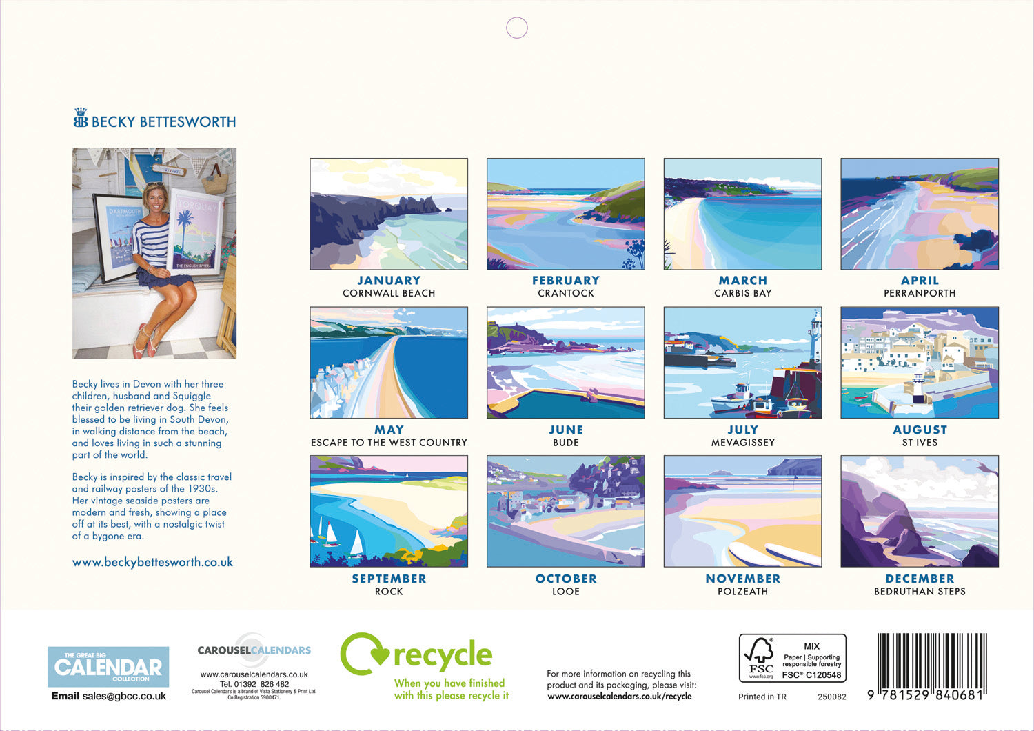 CornWall Calendar, Becky Bettesworth A4 Calendar 2025