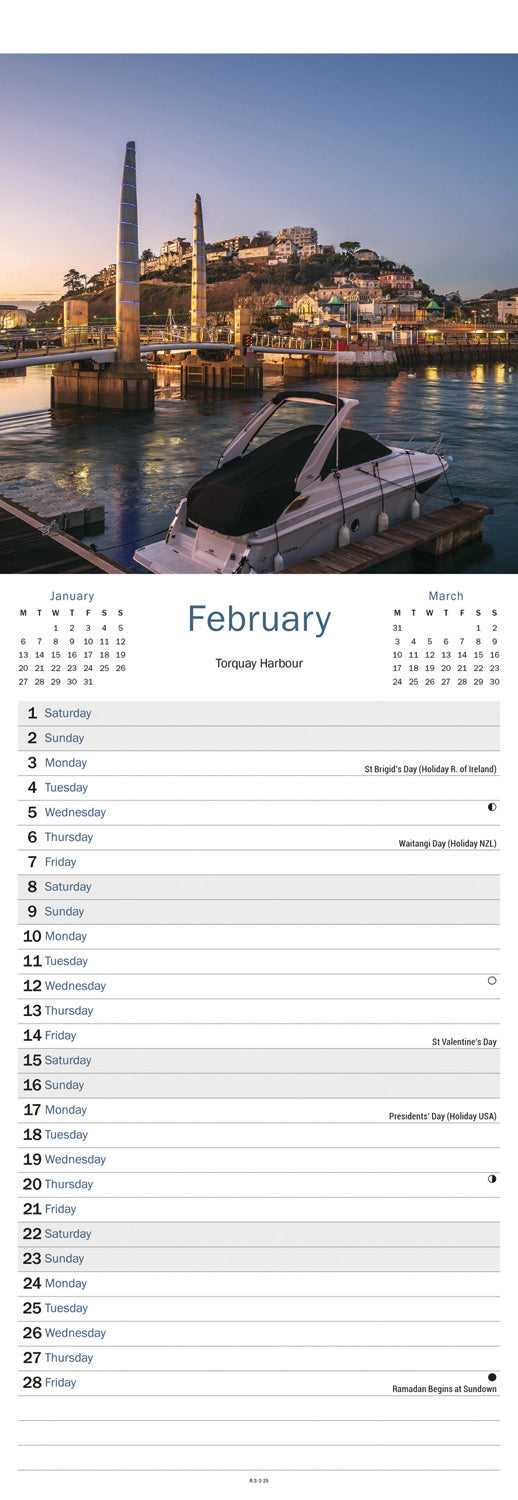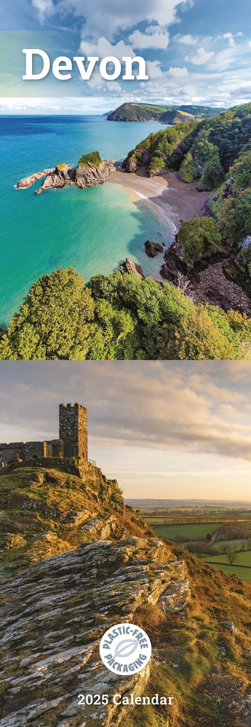 Explore the natural beauty of Devon with this slim calendar. Each month showcases stunning images of rolling hills, rugged coastline, and picturesque villages, inviting you to discover the diverse landscapes and attractions of this scenic county.