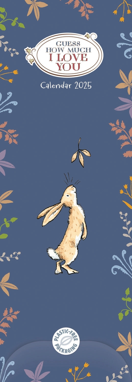 Celebrate the bond between loved ones with the Guess How Much I Love You Slim Calendar. Each month features charming illustrations inspired by the beloved children's book, capturing the heartwarming moments shared between Big Nutbrown Hare and Little Nutbrown Hare. Packaged sustainably with plastic-free materials.