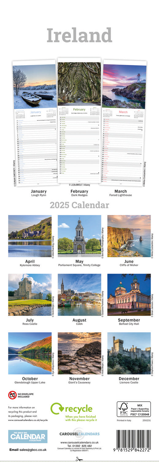 Experience the magic and charm of Ireland with this slim calendar. Each month showcases breathtaking images of Ireland's rugged coastlines, verdant landscapes, and historic landmarks, inviting you to explore the Emerald Isle's timeless beauty and Celtic spirit.