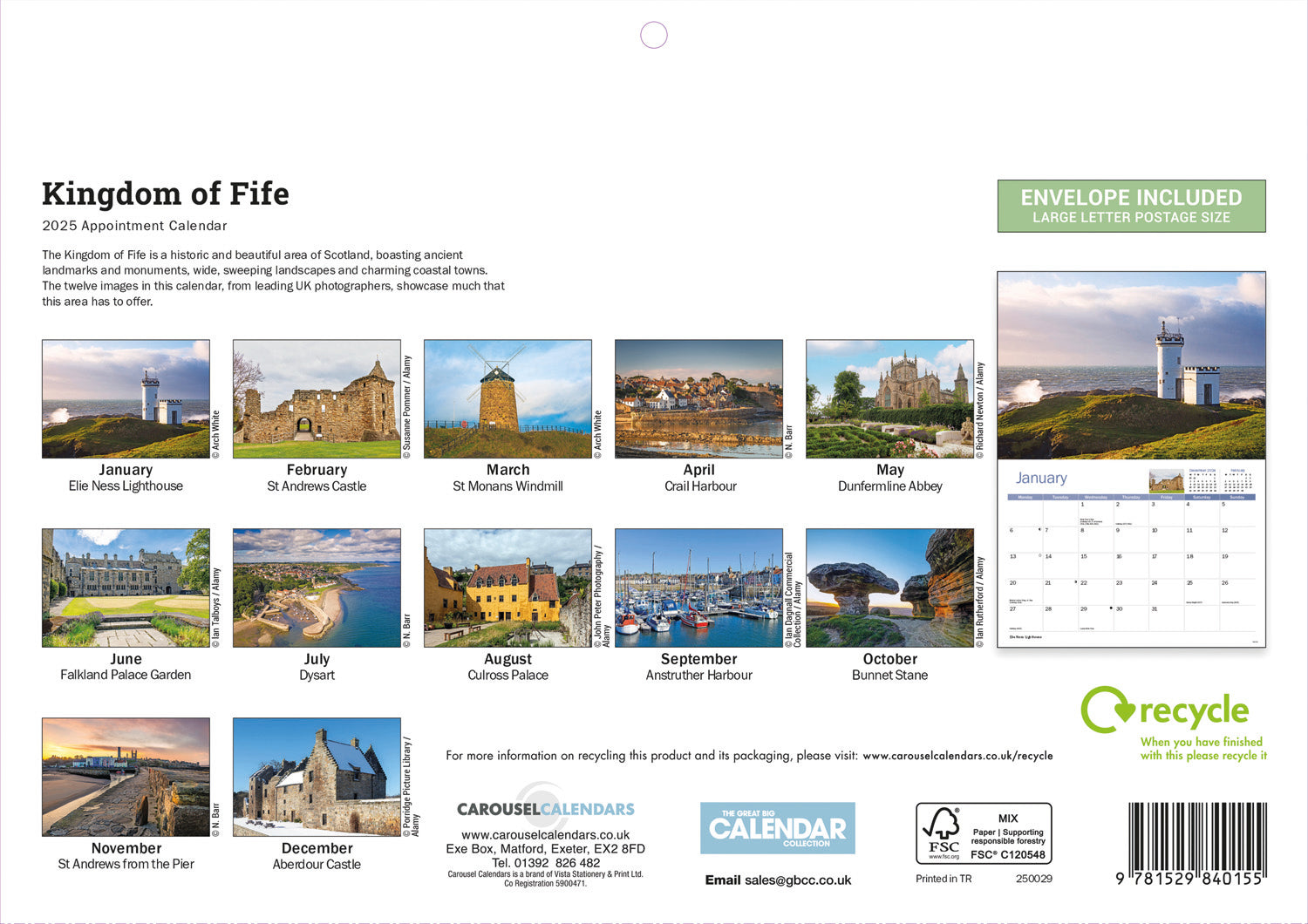 Discover the scenic landscapes and historic landmarks of the Kingdom of Fife with our Kingdom of Fife A4 Calendar 2025. Featuring breathtaking images capturing the essence of Fife, this calendar celebrates the natural beauty and rich history of this Scottish region. With its A4 size, this calendar is perfect for displaying in your home or office and exploring the beauty of the Kingdom of Fife.