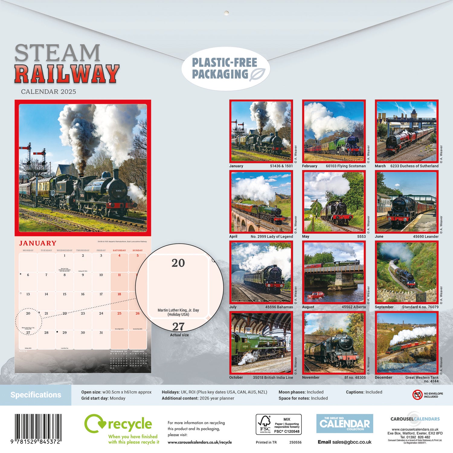 Step aboard the nostalgia express with this charming Steam Railway Wall Calendar!