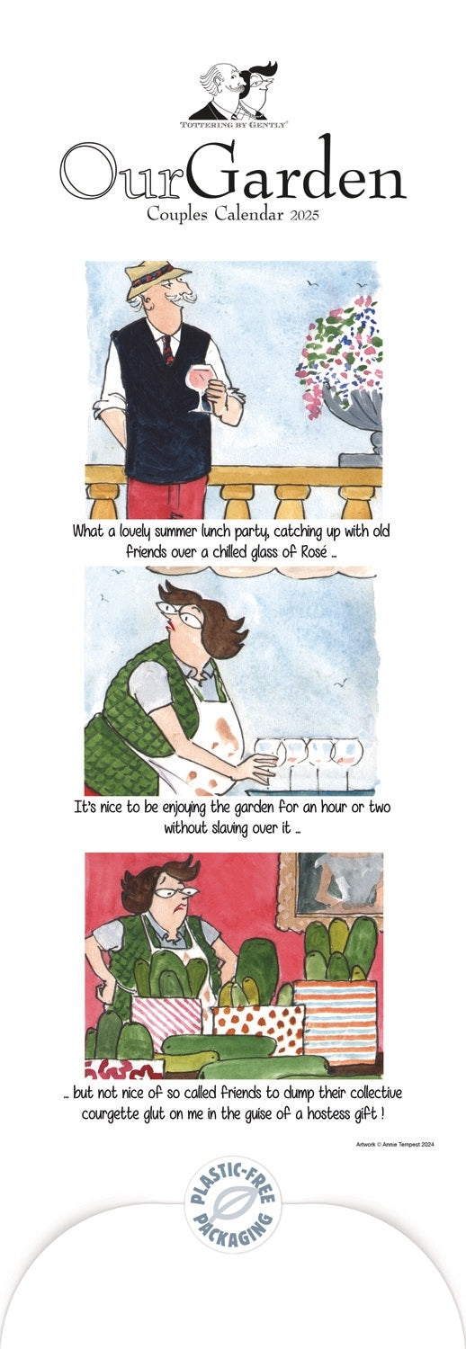 Share your gardening adventures with the Tottering By Gently Our Garden Couples Planner Slim Calendar. With its charming artwork and practical planning sections, this calendar helps couples manage their garden tasks and enjoy outdoor activities together. Packaged sustainably with plastic-free materials.