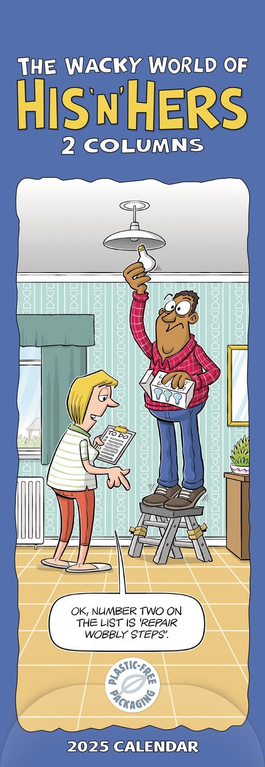 Embrace the fun side of planning with the Wacky World of His n Hers Planner Slim Calendar. Featuring playful illustrations and practical planning tools, this calendar is perfect for couples looking to stay organized and add a touch of humor to their schedules. Packaged sustainably with plastic-free materials.
